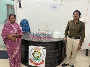 जानकारी के अनुसार दिनांक 10/01/2024 को थाना प्रभारी जूटमिल निरीक्षक रामकिंकर यादव को मुखबीर से ग्राम बनसिया रापेनडीपा में रहने वाली विमला सिदार द्वारा घर पर अवैध रूप से शराब बेचने की सूचना मिला । सूचना पर थाना प्रभारी द्वारा थाने के सहायक उप निरीक्षक नरेंद्र सिदार के हमराह महिला स्टाफ और पेट्रोलिंग पार्टी को कार्यवाही के लिए ग्राम बनसिया रापेनडीपा रवाना किया गया । जूटमिल पुलिस द्वारा संदेही महिला विमला सिदार को तलब कर गवाहों के समक्ष मकान, आंगन की तलाशी ली गई, तलाशी दौरान विमला सिदार के मकान के बाहर बाथरूम के पीछे थैले में शराब रखा हुआ मिला जिसे चेक करने पर थैला अंदर 21 पाव देशी प्लेन शराब और एक 10 लीटर प्लास्टिक जरकिन में करीब 6 लीटर महुआ शराब मिला जिसे विधिवत जप्त किया गया है । *आरोपिया विमला सिदार पति सुशील सिदार उम्र 45 वर्ष ग्राम बनसिया रापेनडीपा थाना जूटमिल रायगढ़* के कृत्य पर थाना जूटमिल में धारा 34(2), 59(क) आबकारी एक्ट के तहत कार्यवाही किया गया है । शराब रेड कार्यवाही में सहायक उप निरीक्षक नरेंद्र सिदार, आरक्षक धनुर्जय चंद बेहरा, विनय तिवारी और महिला आरक्षक देव कुमारी भारते शामिल थी ।