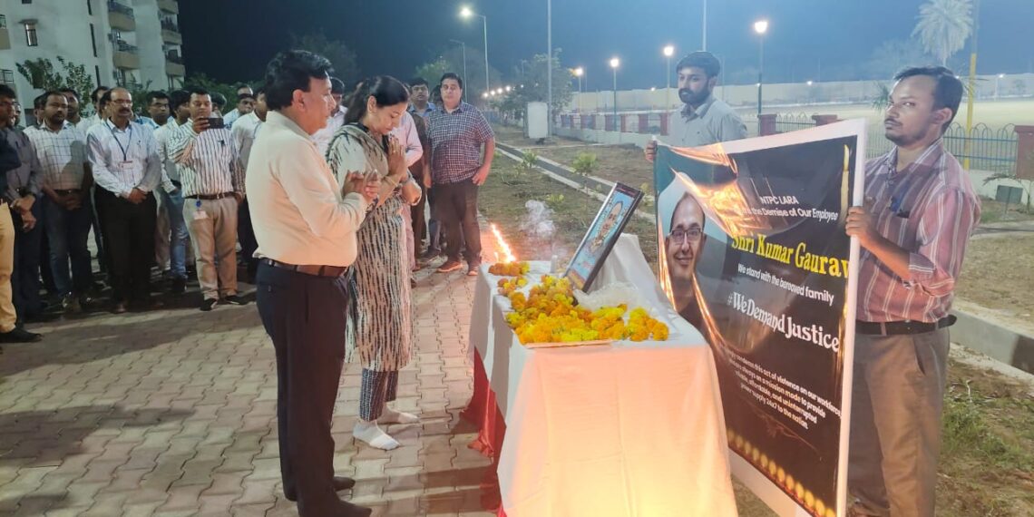 🥁टिल्लू शर्मा ✒️टूटी कलम 🎤 न्यूज रायगढ़ छत्तीसगढ़ 🎷 एनटीपीसी के दिवंगत कर्मचारी कुमार गौरव, उप महाप्रबंधक (कोल् डिस्पैच), एनटीपीसी करंदरी कोल् माइनिंग परियोजना जो की झाड़खंड के हजारीबाग में कार्यरत थे. बीते 8 तरीख को सुबह ड्यूटी जाते समय असामाजिकतत्वों द्वारा गोली मारकर हत्या कर दी गई थी उनकी श्रद्धांजलि देने के लिए एनटीपीसी लारा की मैत्री नगर में सभीकर्मचारियों द्वारा कैंडल मार्च निकाली गई। नगर परिसर के केलो भवन परिसर से कार्यकारी निदेशक अनिल कुमार एवं अनुराधा शर्मा के नेतृत्व में कर्मचारी एवं उनके परिजनों ने कैंडल मार्च में भाग लेकर नेताजी सुभाष चंद्र बोस पार्क में कुमार गौरव के फोटो चित्र पर श्रद्धांजलि अर्पित की गई।
