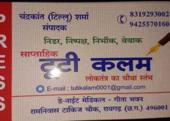 Read more🔱टिल्लू शर्मा ✒️टूटी कलम 🎤 न्यूज रायगढ़ 🌍 छत्तीसगढ़ 🏹 नंबर वन की तरफ तेजी से बढ़ रहा *टूटी कलम...